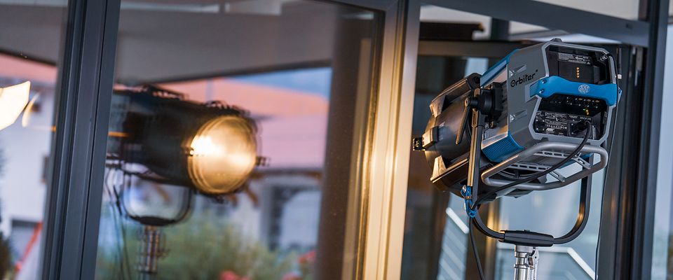 ARRI accessories like the 4- (L2.40950.0) and 8-leaf (L2.40960.0) barndoors can be added to the new Orbiter Fresnel Lens to enable a perfect cut. Physical gels can also be used in addition to the more than 300 already pre-programmed gels available for Orbiter.