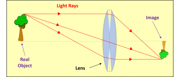 REFLEX MIRRORS: To get both viewfinder and lens to see the exact same image, we can simply place a mirror at the back of the camera lens at 45°angle to reflect the light away from the camera, and then a second mirror to redirect the light through the viewfinder, like this.